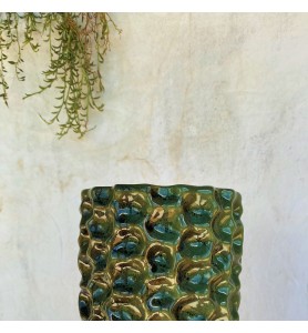 29,00 €jarrón de ceramica coloreado,altura 26cm,ancho maximo 12cm y la boca tiene 3cm de diámetro.