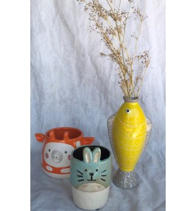 12,00 €jarrón de cerámica con forma de limón ,altura 12cms.,ancho máximo 9cms. y la boca tiene un diámetro de 1,5 cms.