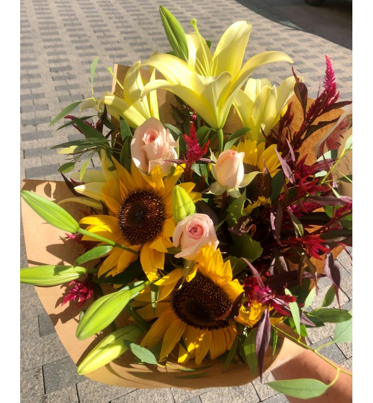 ramo de flores naturales predominando el amarillo