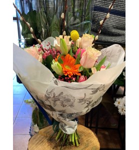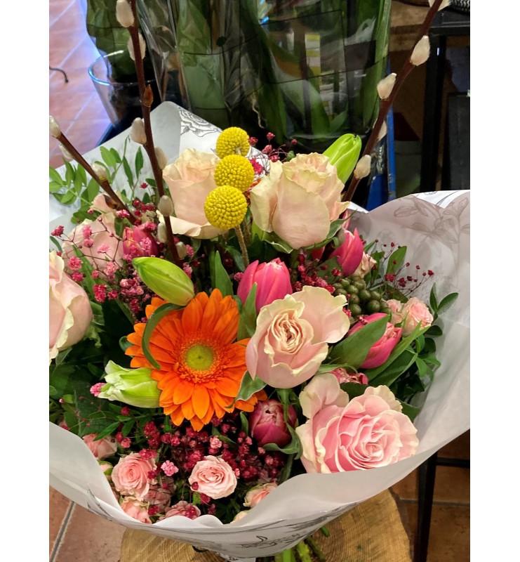 ramo de flor natural ,con variedad de color y de tipos de flor.