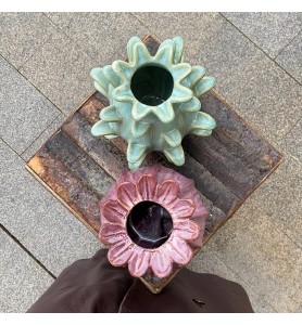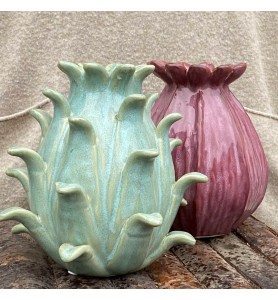 jarrón de cerámica esmaltado rosado, con pies de fieltro.